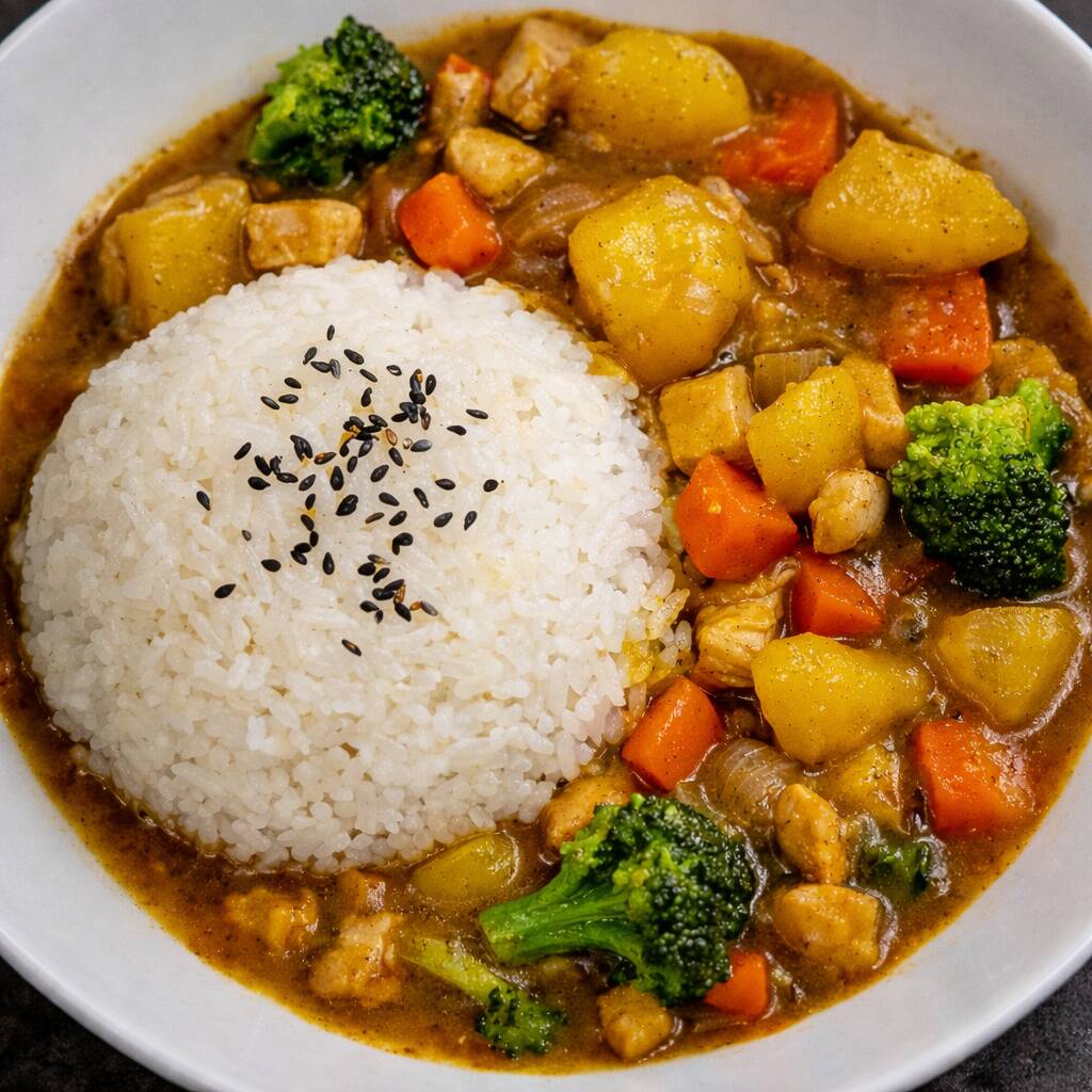 Arroz Blanco Con Pollo en Salsa Curry Japones