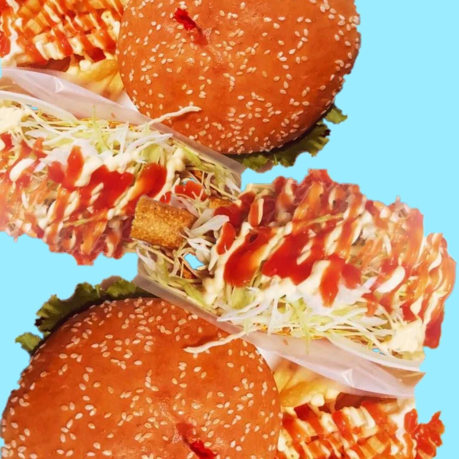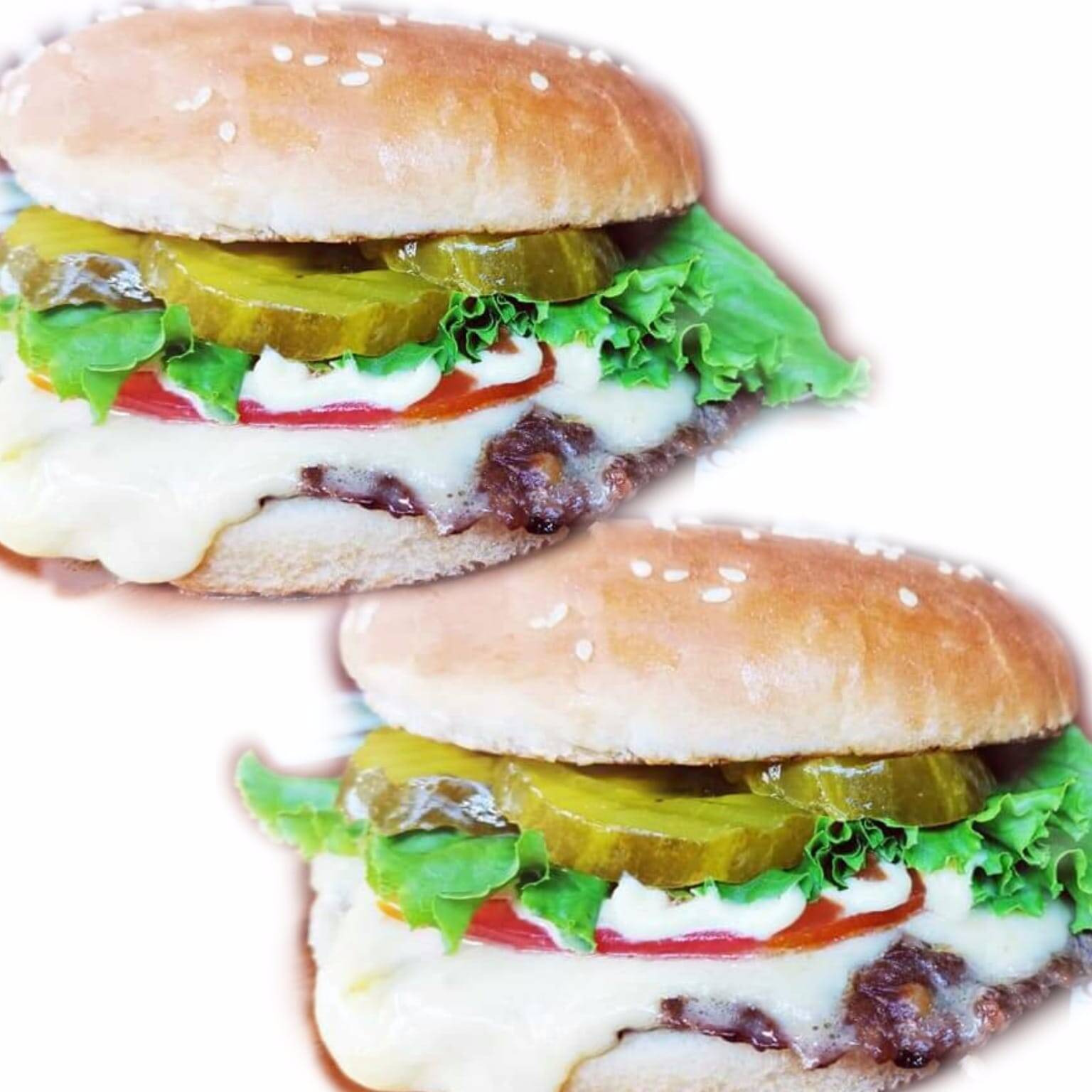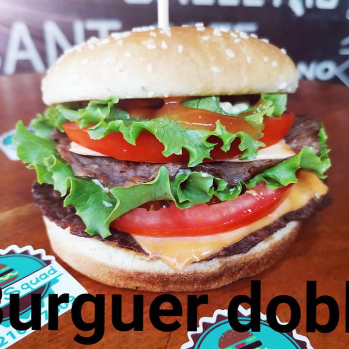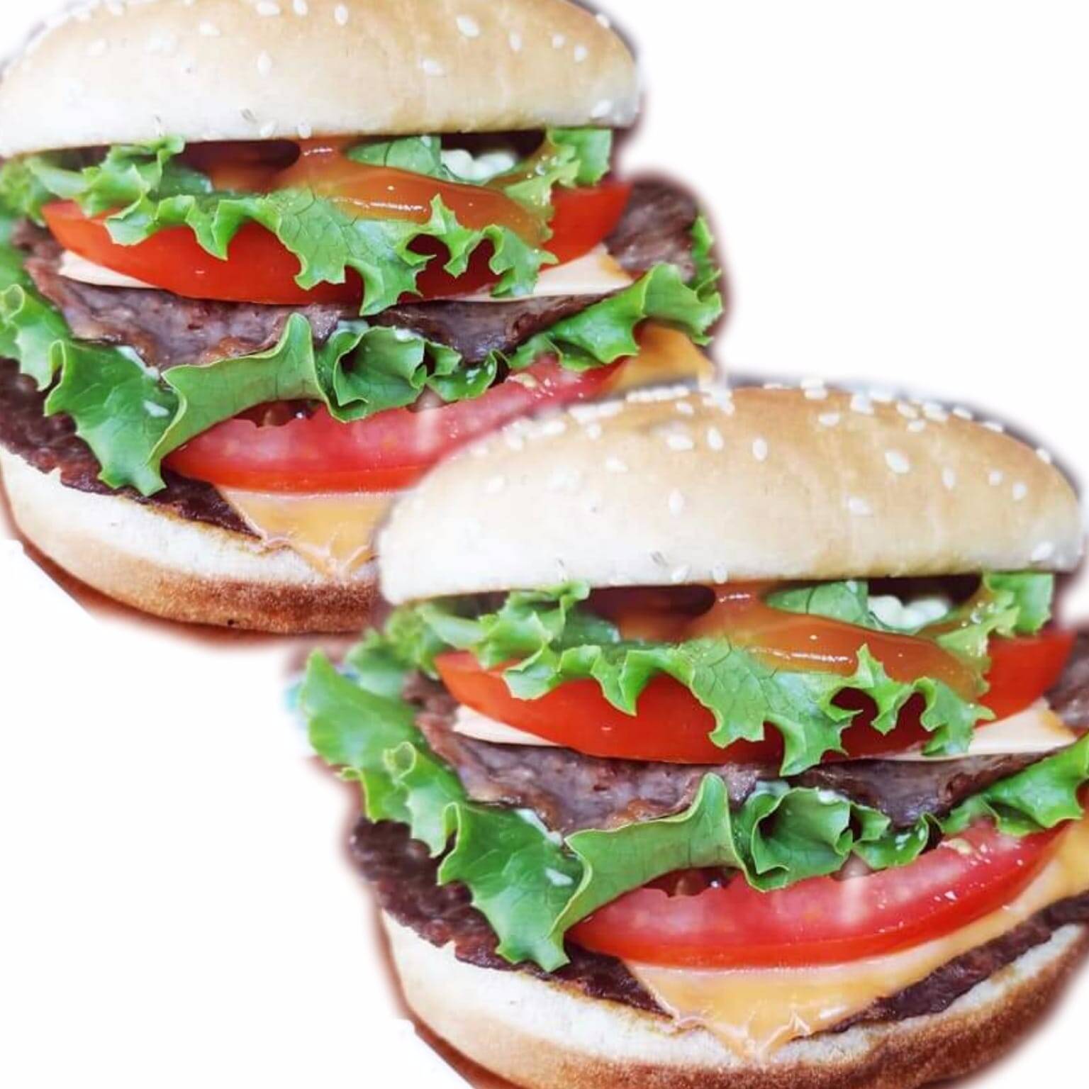 2 tortas, 2 quesos, 2 lechuga, 2 tomate y doble salsas