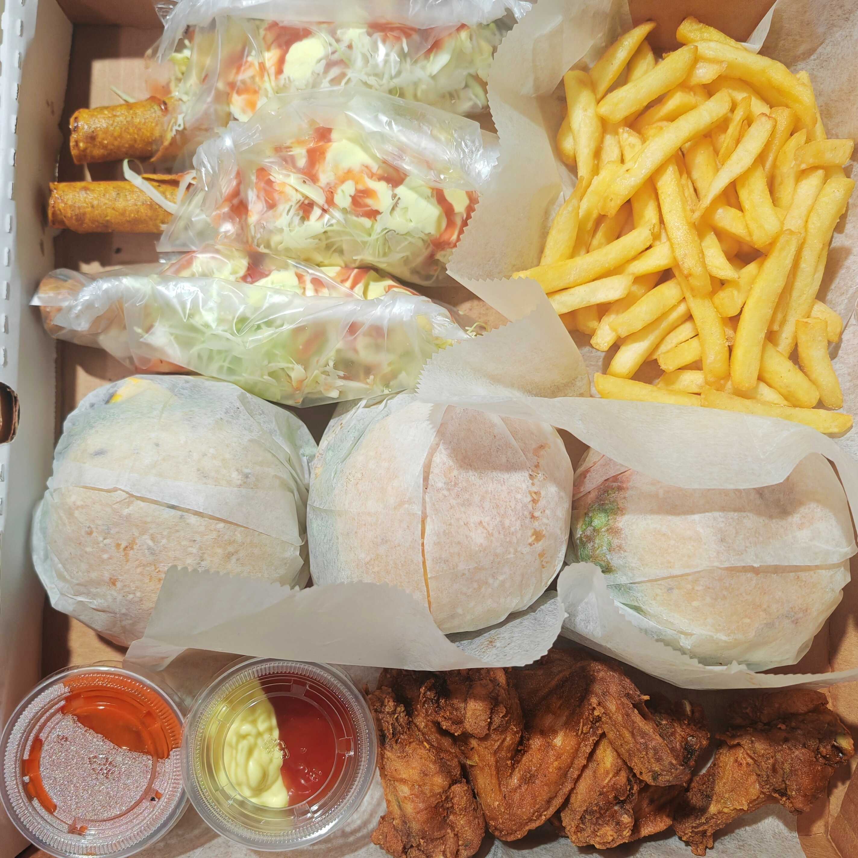 Papa Pequeña*1 + Hamburg Grande Con Queso*3 + 6 Alitas + Salsa*1
