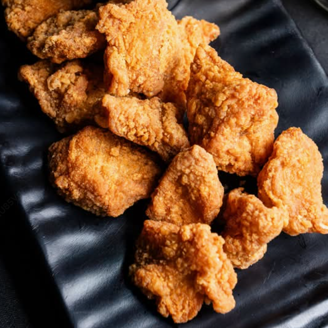 Crujientes trocitos de pollo empanizados ideales para picar.