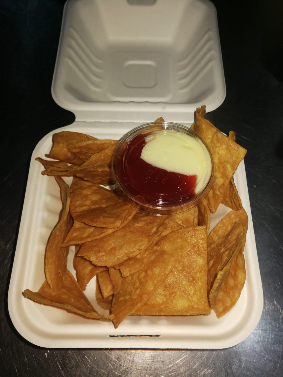 Tortilla torta,papá tostada,y salsas