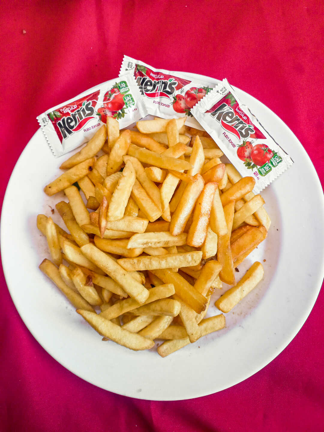 papas fritas acompañadas con salsa de tomate