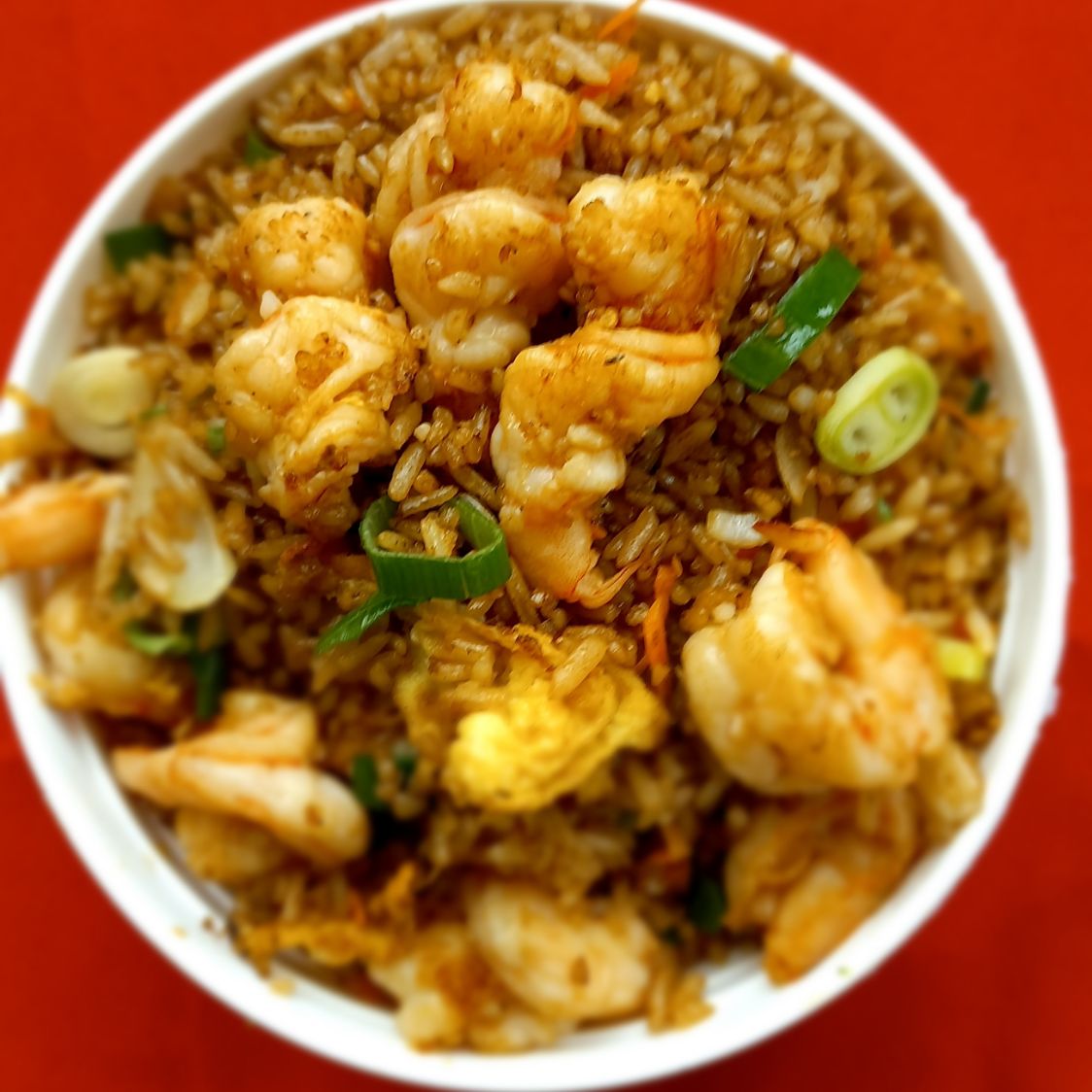 Arroz con camarones cebolla cebollin y zanahoria