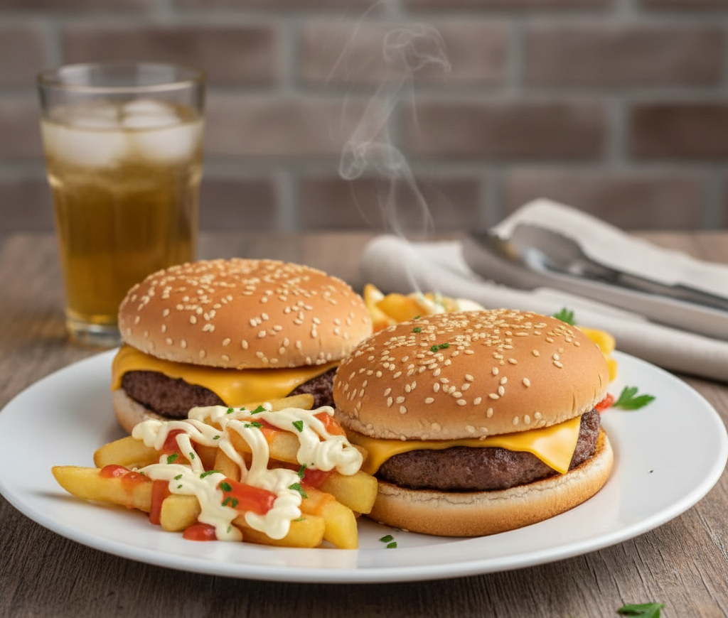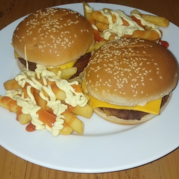 2 Queso Burguesas + Papas Fritas