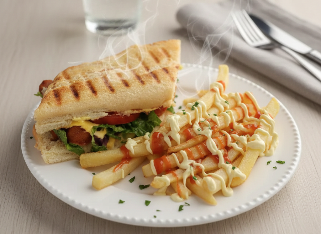 210g de papas fritas y salchicha en rebanadas, salsa de tomate y ma4