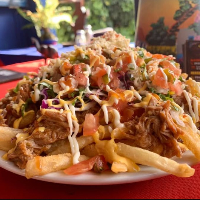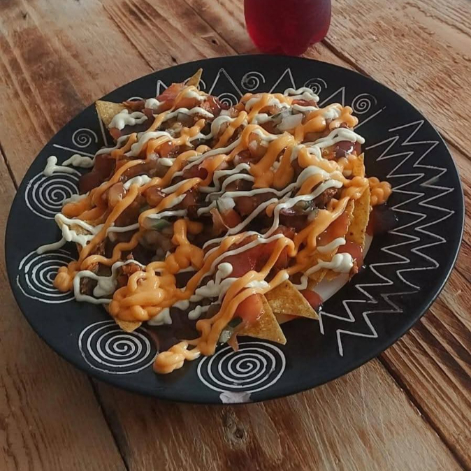 200 g De papas fritas, frijoles molidas, (carne o pollo) pico de gallo, salsa de tomate, mayonesa y salsa de queso.