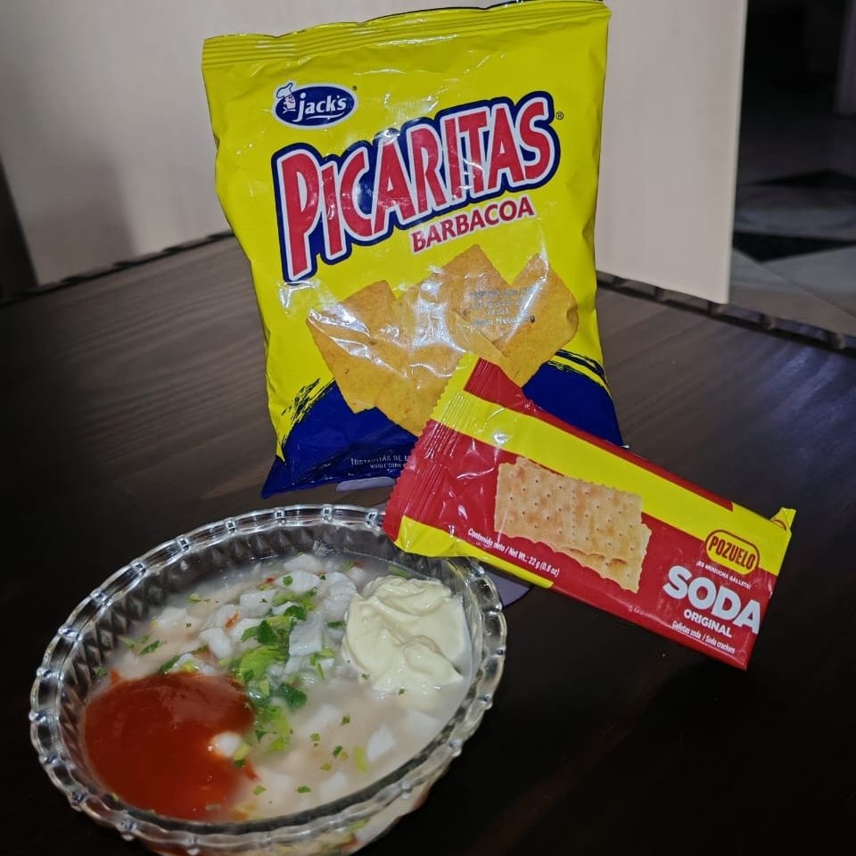 Ceviche de pescado, picaritas, salsa de tomate y mayonesa