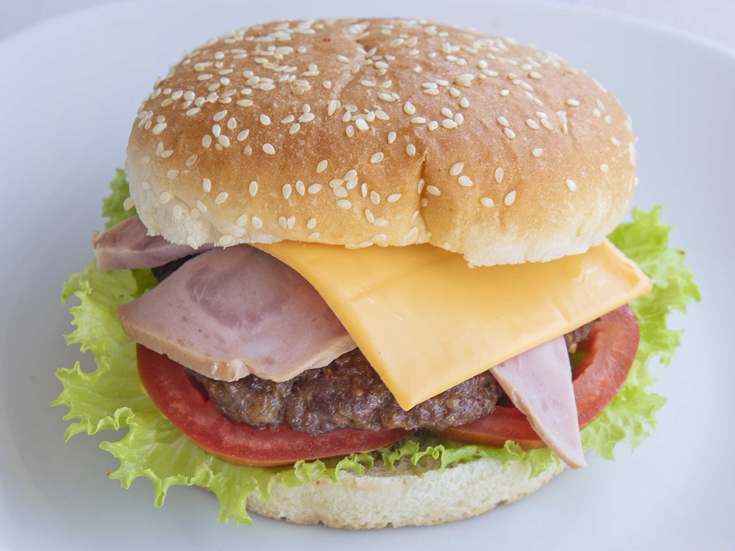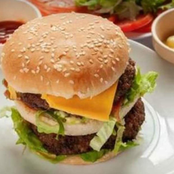 Hamburguesa doble torta casera con queso, jamón, tomate, lechuga o repollo