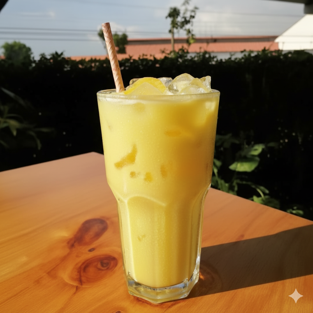Hamburguesa con torta 1/4 de libra de pura carne, cebolla, lechuga o repollo, tomate, jamón y salsita de la casa, acompañada de papas o doraditas y refresco natural.