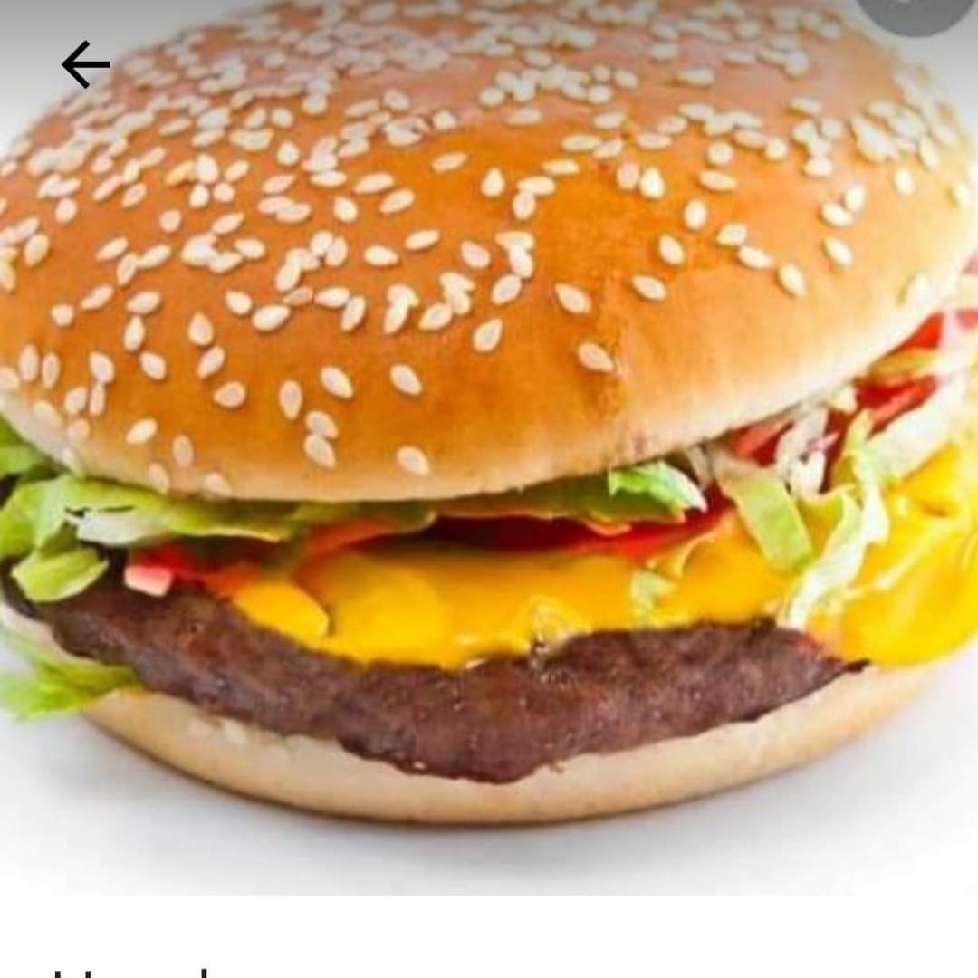 Es una hamburguesa con torta de carne, queso amarillo, tocineta, encima con lechuga o repollo y tomate natural con salsita de la casa.