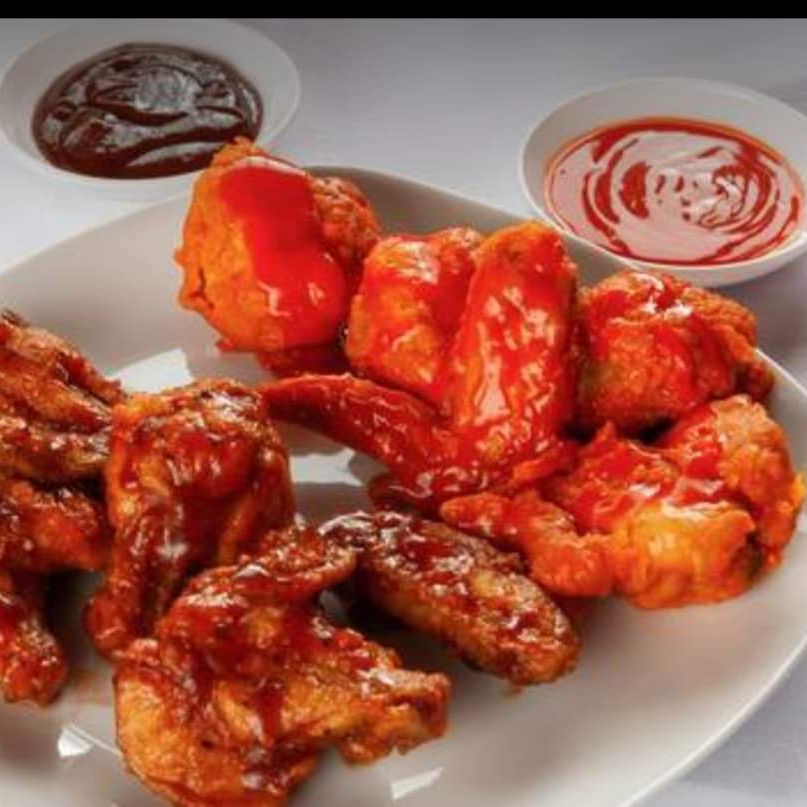 10 alitas de pollo bañadas en salsa búfalo o barbacoa, elige tu favorita.