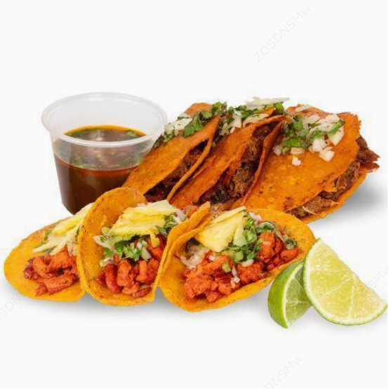 Tres auténticos tacos mexicanos del mismo sabor. Acompáñalo con un delicioso chicharrón de queso, totopos con frijoles o papas a la mexicana, ¡para chuparse los dedos!