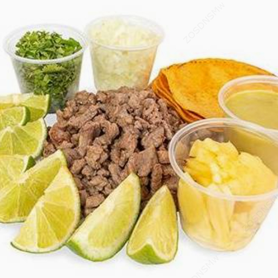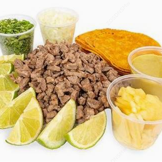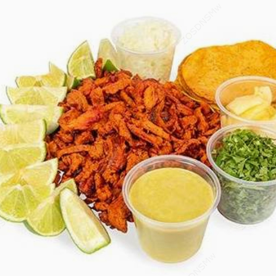 Kilo de carne al pastor (cerdo) acompañada de 24 tortillas de maíz, culantro, cebolla, limones y piña.