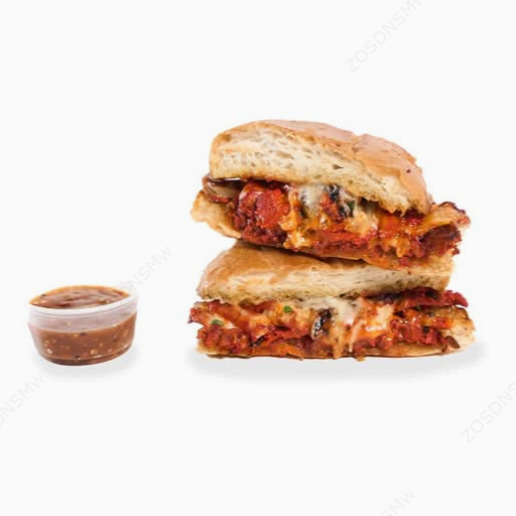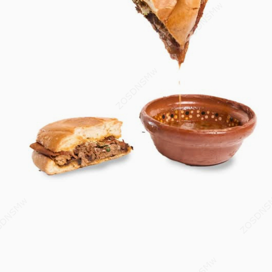 Deliciosa torta mexicana elaborada con pan telera, birria, queso, frijoles, culantro, cebolla, acompañada con consomé de birria.