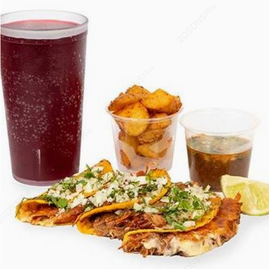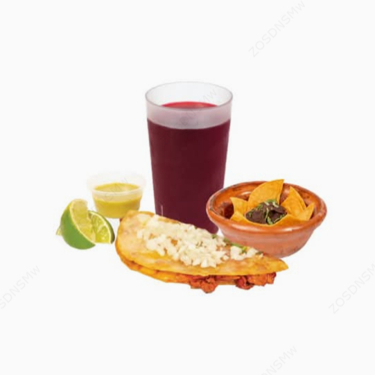 Tres auténticos tacos de birria con queso, acompáñalo con un delicioso chicharrón de queso, papas a la mexicana o totopos con frijoles. Incluye bebida natural, ¡para chuparse los dedos!