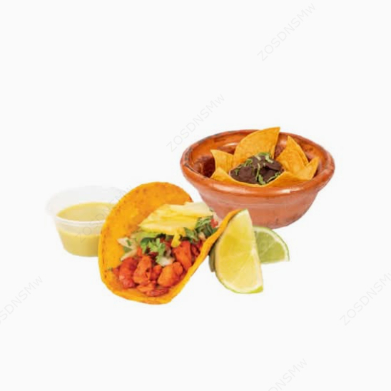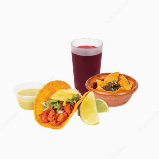 Taco al Pastor, Totopos con Frijoles y Bebida