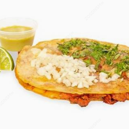 Doble tortilla de harina, queso y carne al pastor (cerdo), ¡órale!