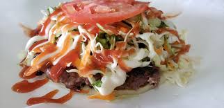 Pan de hamburguesa, torta de carne de res, lechuga, tomate, salsa de tomate y mayonesa.