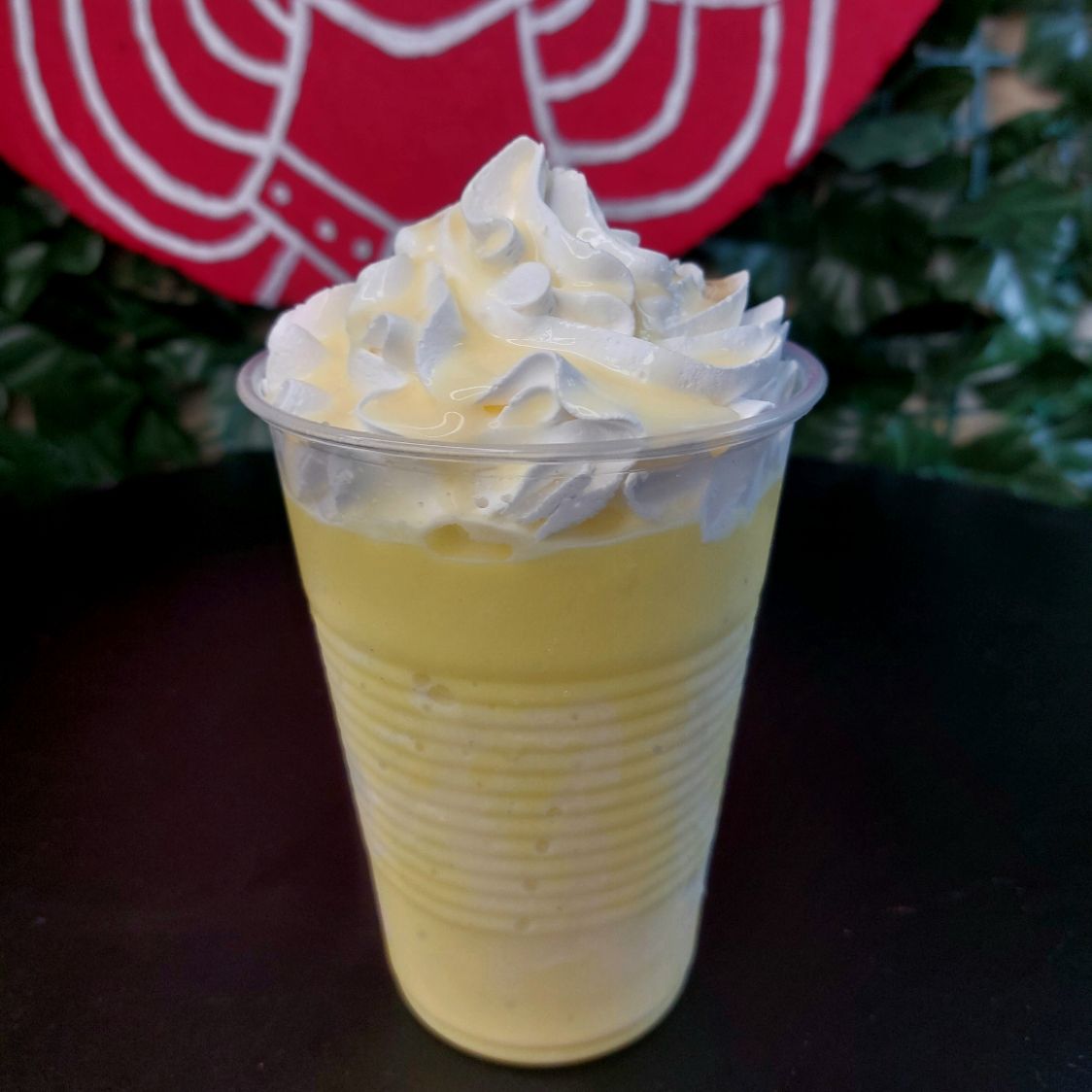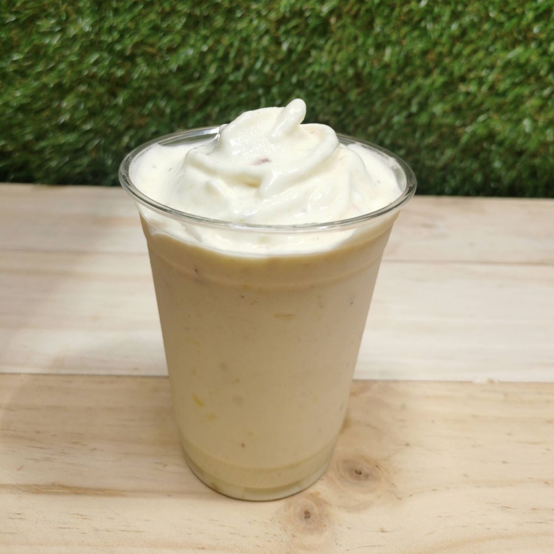 Leche, piña, hielo frappé, chantilly, condensada y coco.