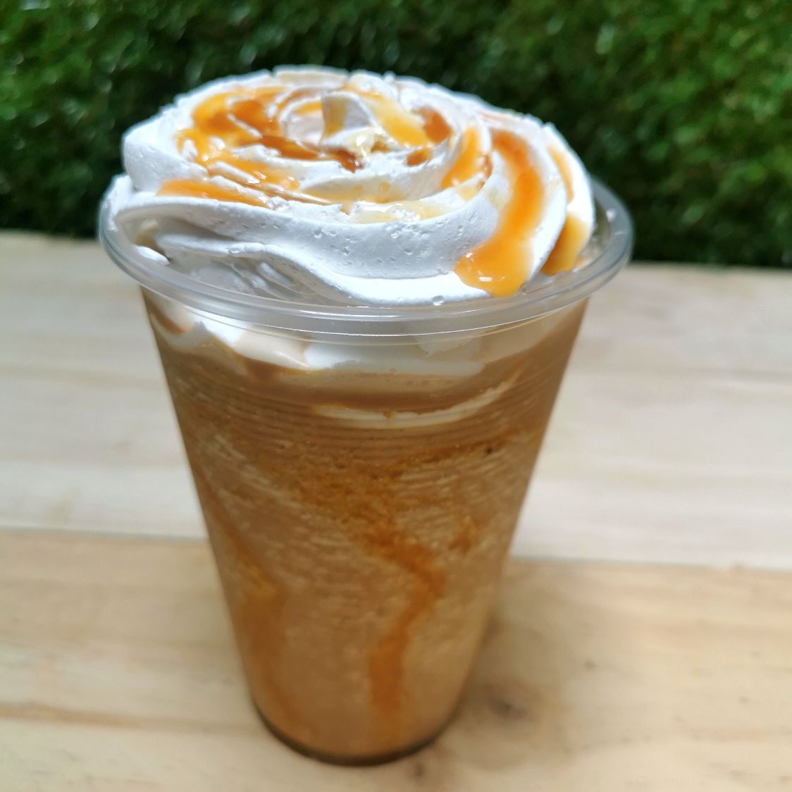 café frio, helado ,caramelo y chantilly.