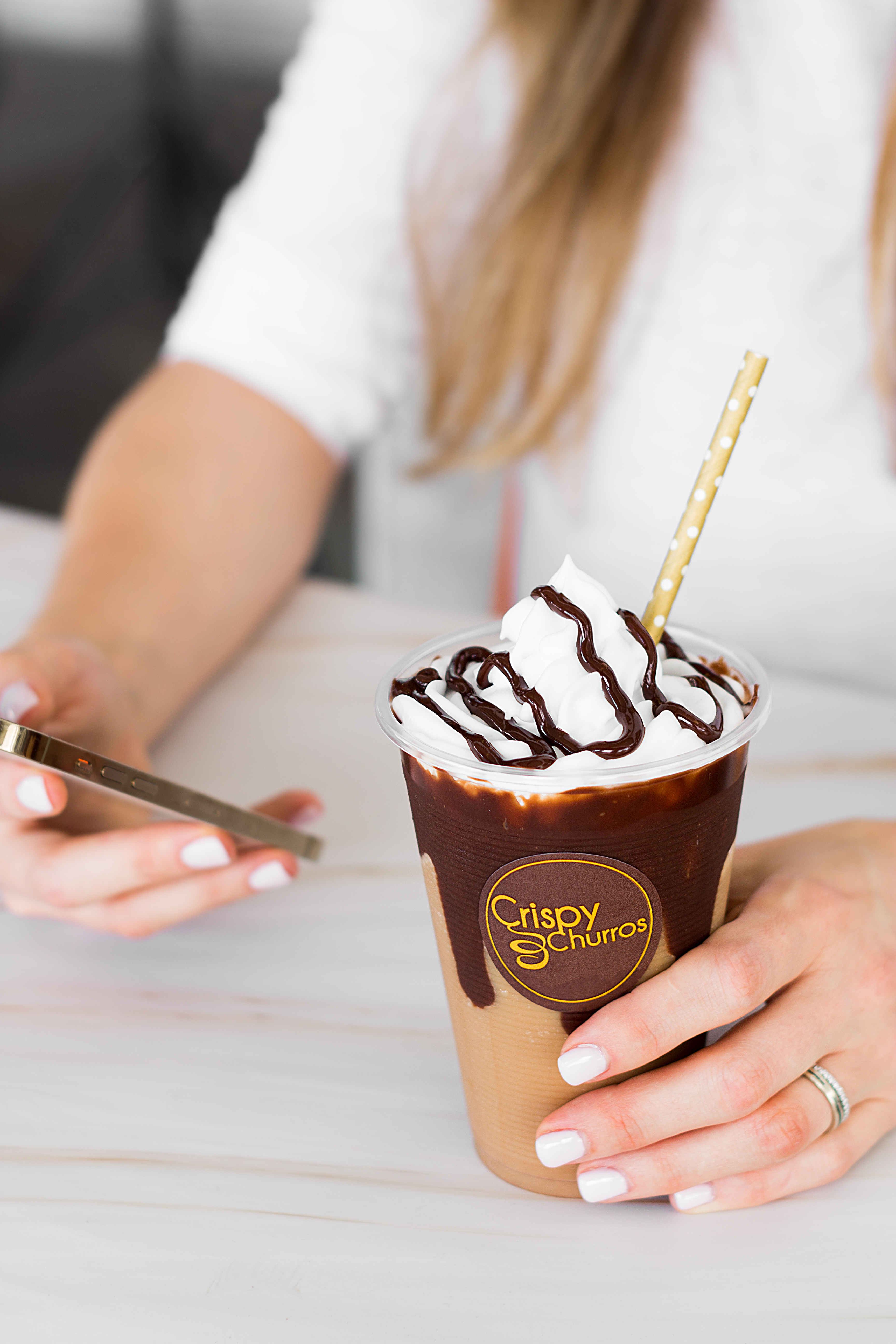 Milkshake de dulce de leche con un churrito fresco y crujiente.