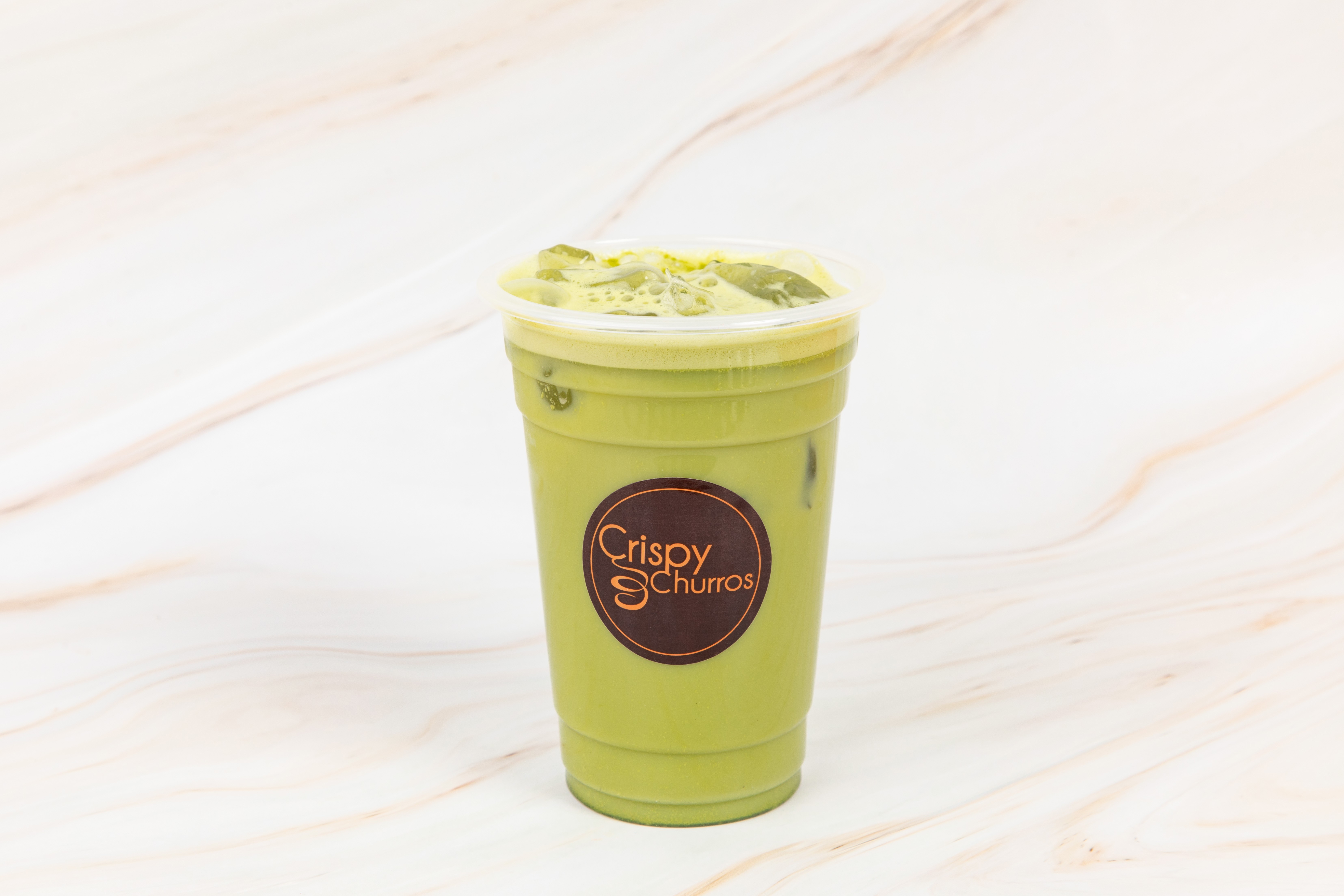 Matcha latte frío, refrescante y cremoso.