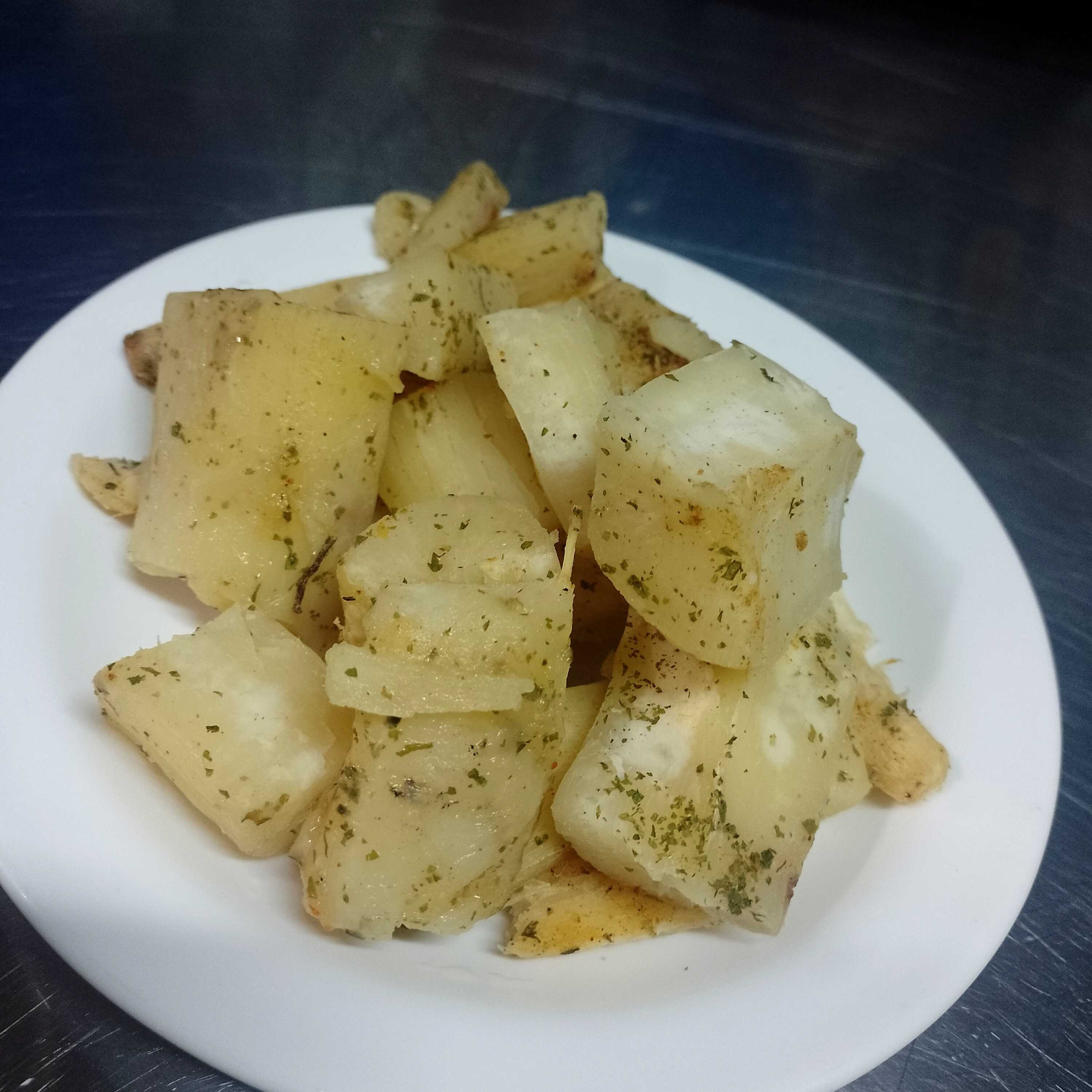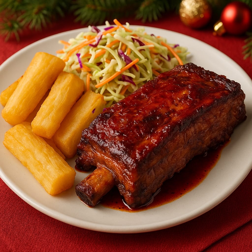 son 100gramos de yuca acompañados de costilla al bbq