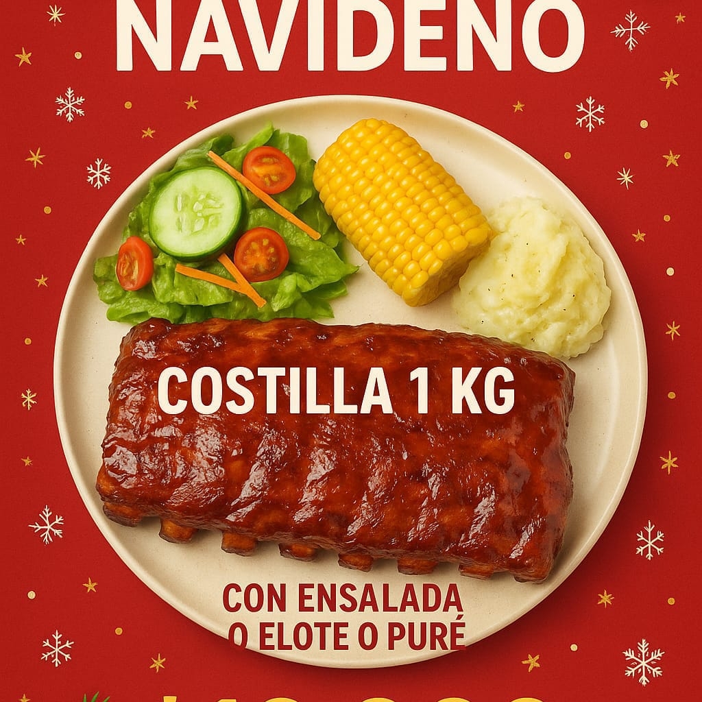 200 g De costilla, 100 g de yuca, 2 oz de ensaladas + té frio.