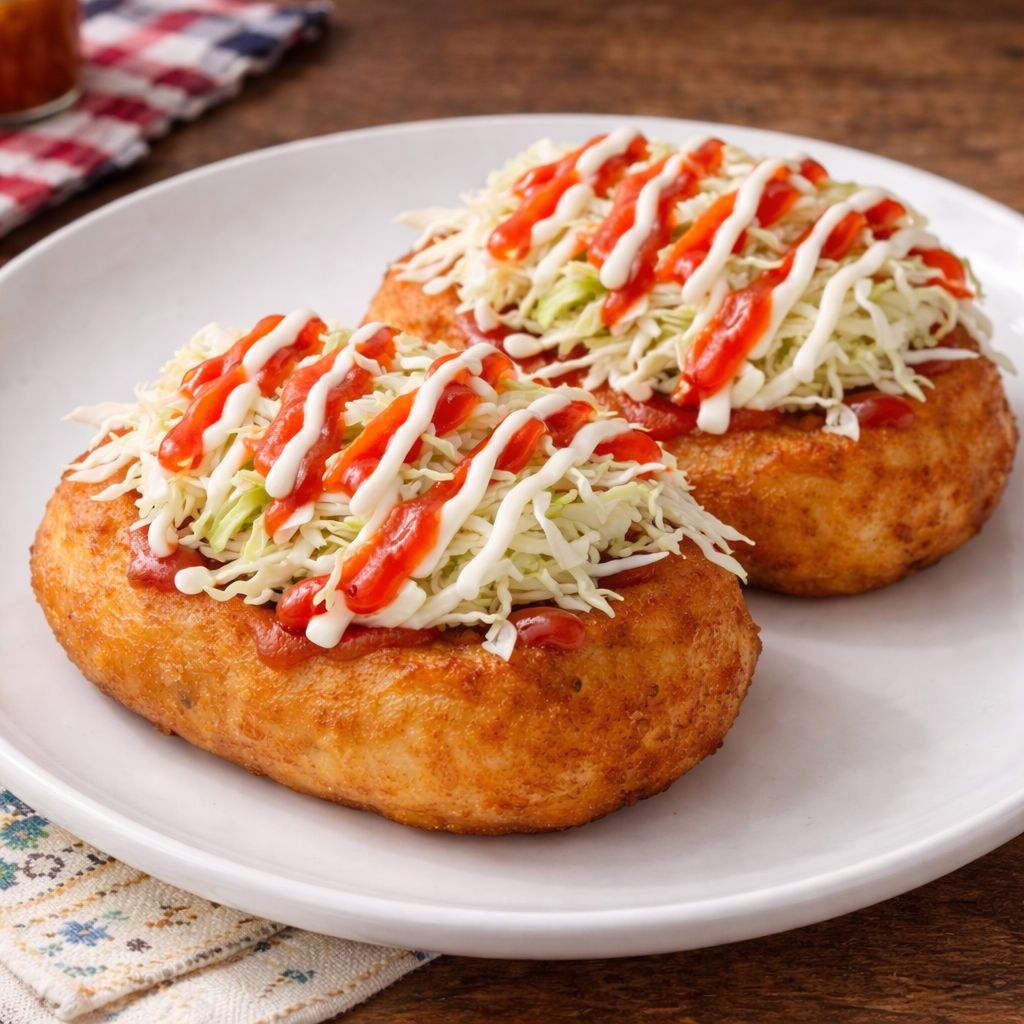 2 Gallos de Salchichón Elaborados con Tortilla Palmeada, Repollo Fresco y Salsas