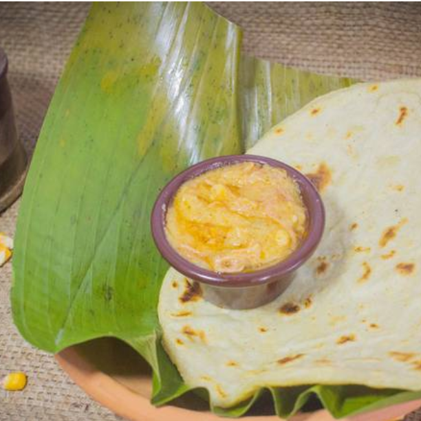 Mezcla de carne de res y maíz, tipo guisado acompañado con tortilla de maíz.