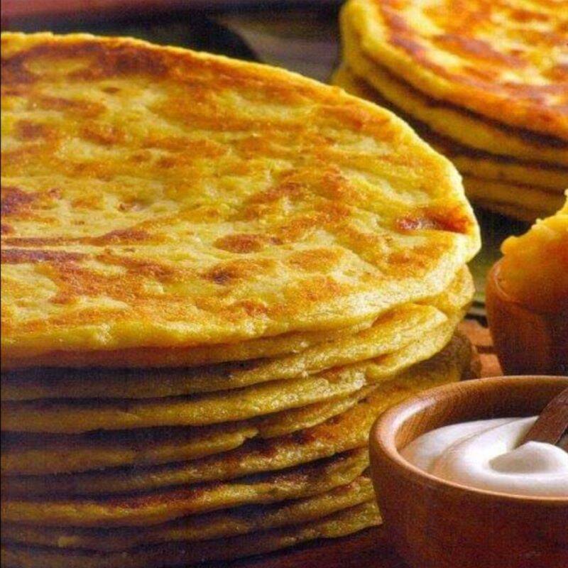 Pupusa rellena de queso, chicharrón, frijol con una porción de queso extra. Acompañada de salsa de tomate y ensalada de repollo.