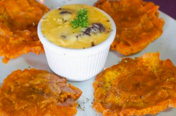 Patacones con Frijoles y Queso