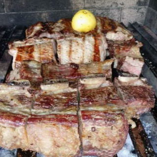 Costilla de cerdo con ensalada y Coca-Cola chica.