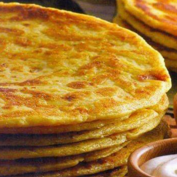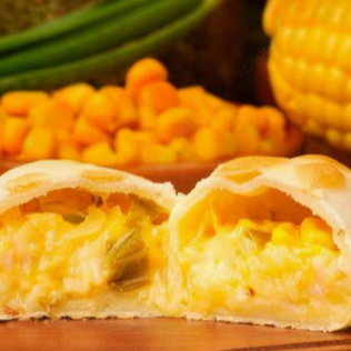 Empanada de choclo con salsa, olores, especias, queso y choclo rallado.