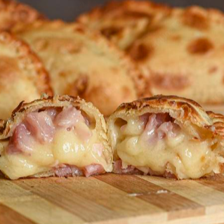 2 Empanadas de jamón y queso horneadas. Incluye bebida a elegir.