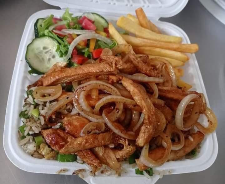 Acompañado de ensalada, papas, arroz blanco o cantones