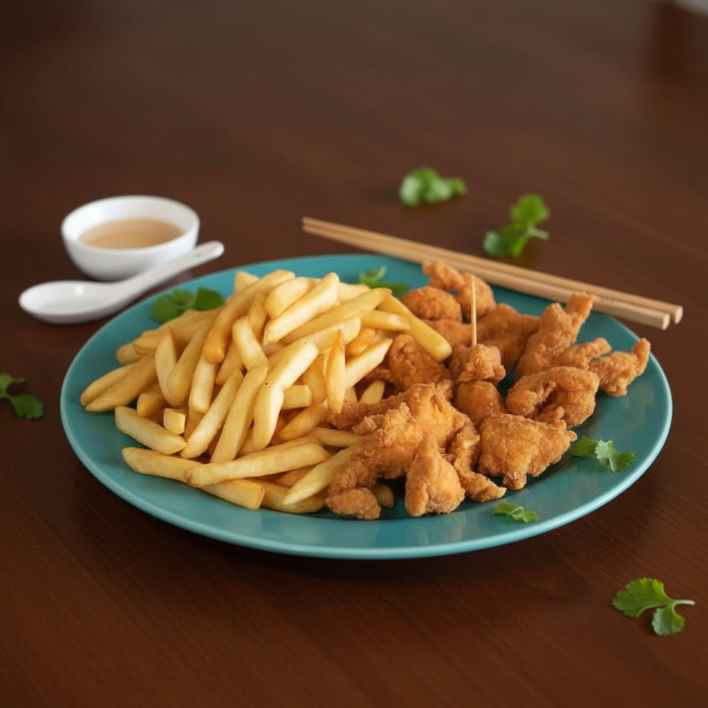 Pescado Empanizado con Arroz Cantones