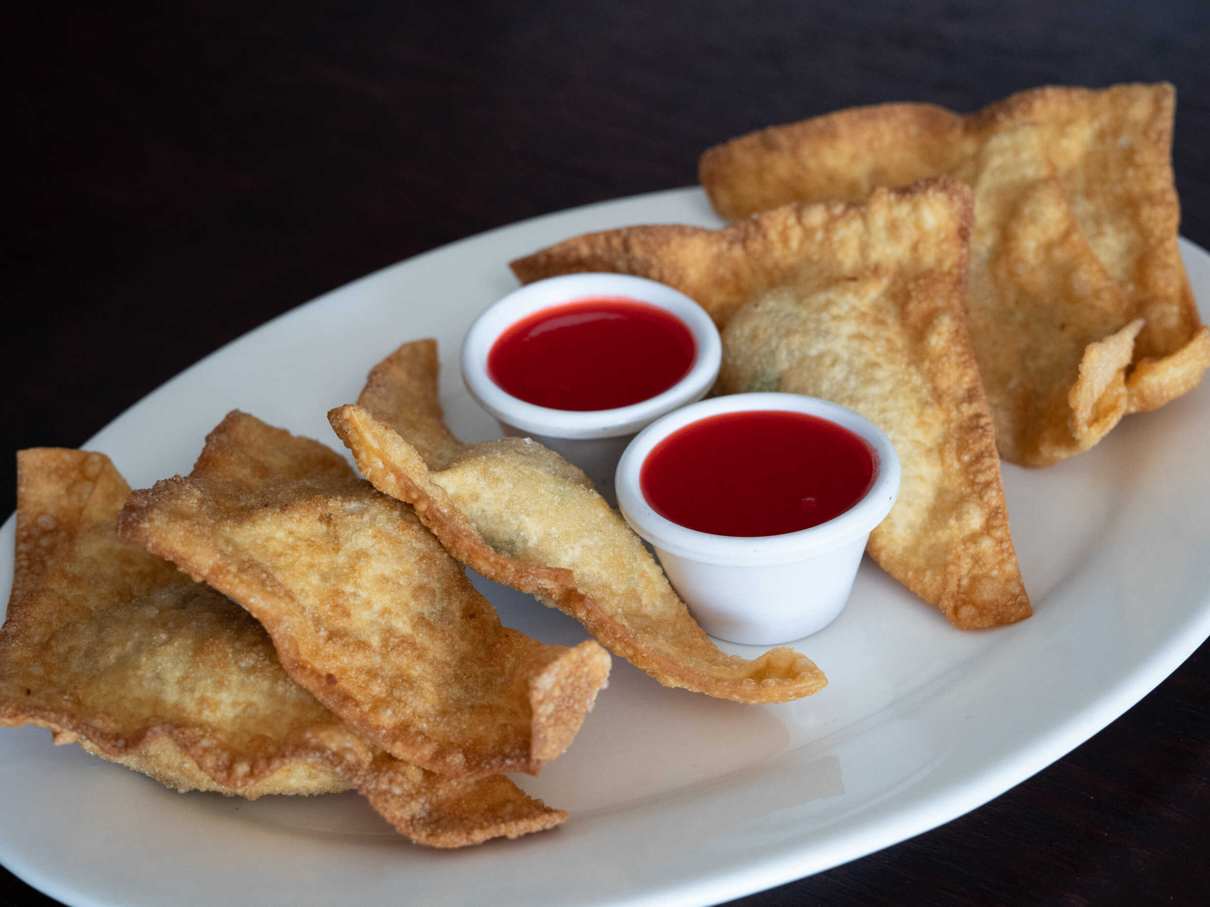4 unidades de pasta de wantan rellena de camaron y salsa