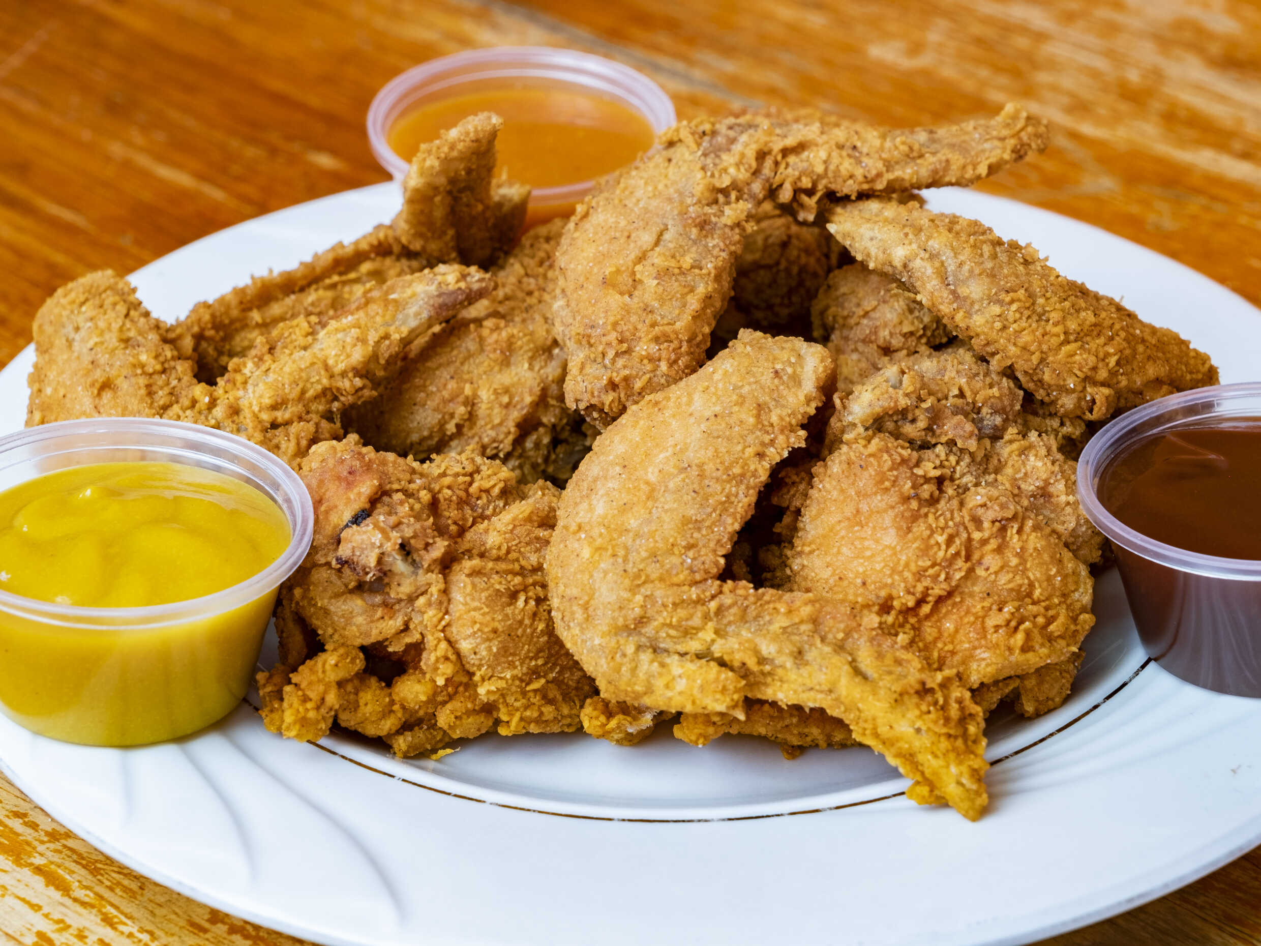 Añade la cantidad de alitas, añade la preparación y acompáñalas con salsa a elección.