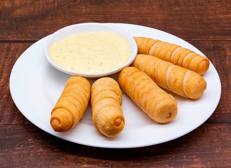 Palitos de queso fresco, envueltos en una deliciosa pasta de ojaldre, acompañado de Salsa a elegir