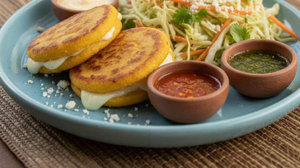 ¡Disfruta de nuestras deliciosas Mini Arepas! 🧀 Rellenas de queso fresco, acompañadas de una crujiente ensalada de repollo y nuestras irresistibles salsas de la casa. ¡Una explosión de sabor en cada bocado! 🇨🇷