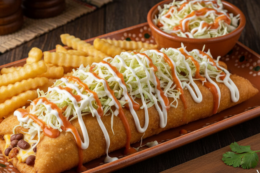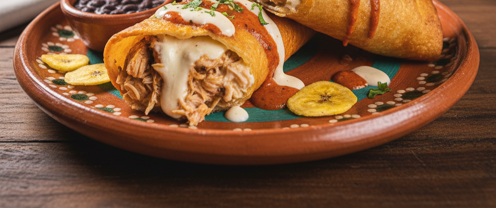 ¡Descubre nuestra Chimichanga Pollota! 🇨🇷 Una tortilla crujiente rellena de jugoso pollo desmenuzado, queso mozzarella derretido, nuestra cremosa salsa carbonara y un toque picante de chipotle. ¡Una explosión de sabor en cada bocado! 🤤