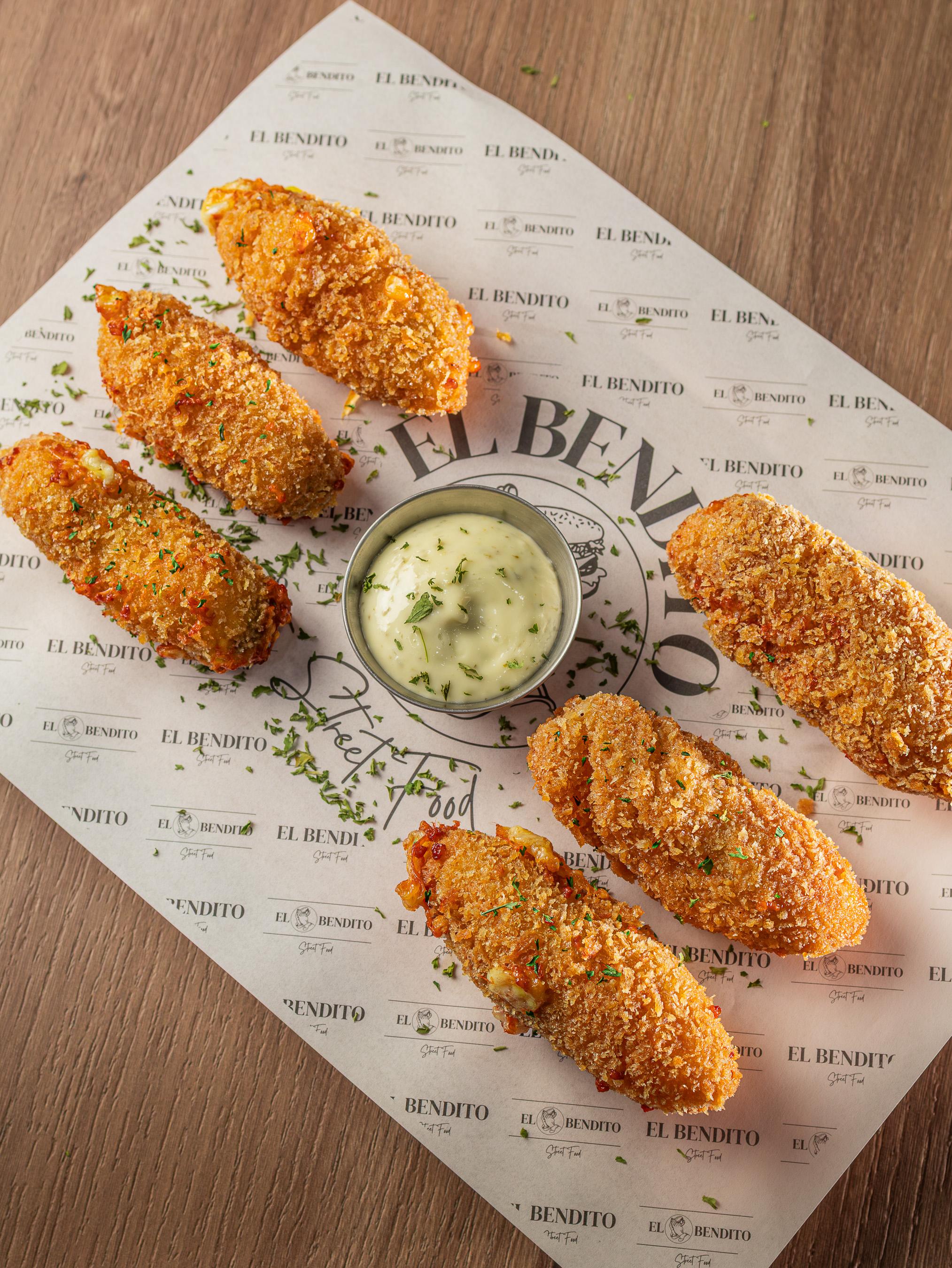 6 pepinillos envueltos en queso mozarella, empanizados y dorados al punto, acompañados a salsa a escoger