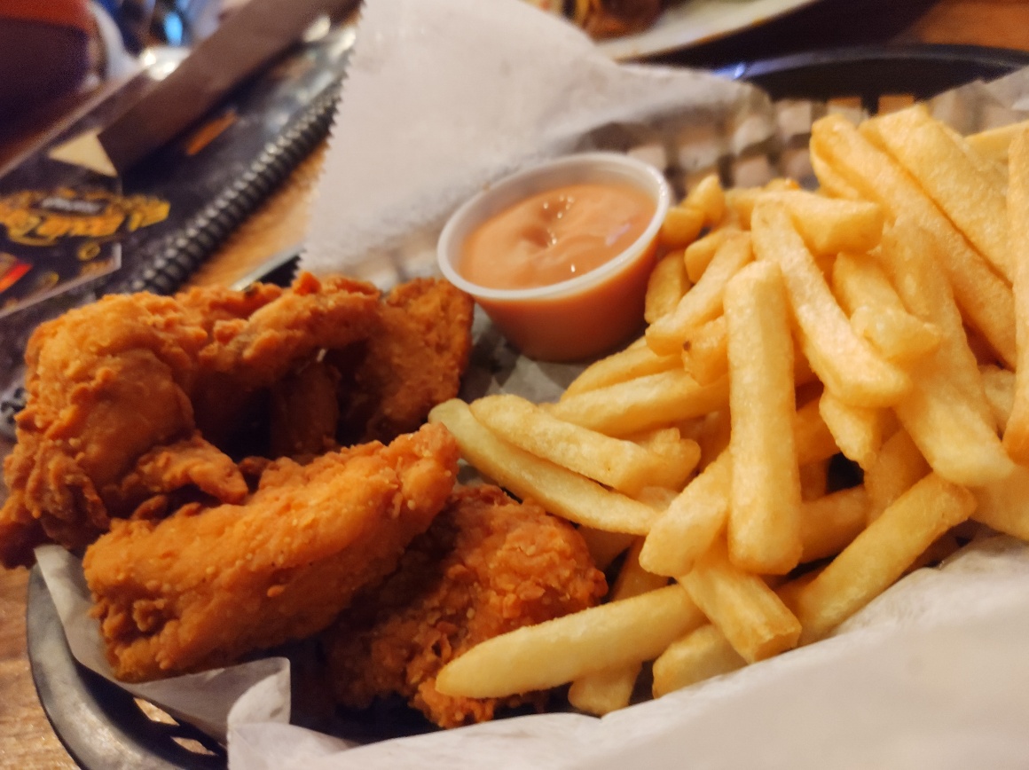 Acompañado de papas fritas.