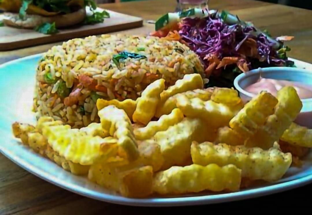Arroz con Camarones + Papas Fritas