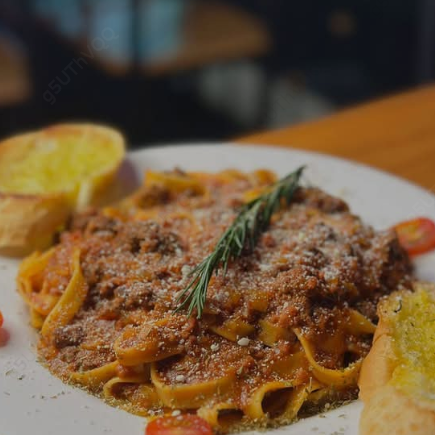Pasta tallarín, carne molida y salsa roja de la casa. Picante 🌶️