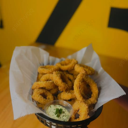 Acompañados de papas fritas y aderezo. Contiene mariscos 🦐