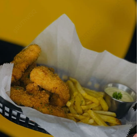 Acompañado de ensalada verde, aderezo de la casa, papas a la francesa y salsa de la casa. Contiene mariscos 🦐