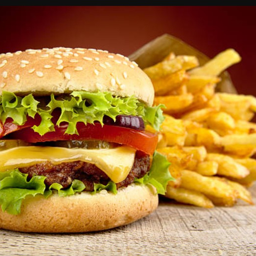 Una hamburguesa con torta de carne de res casera, queso cheddar, 200 g de papas fritas más una Coca Cola 355 ml.