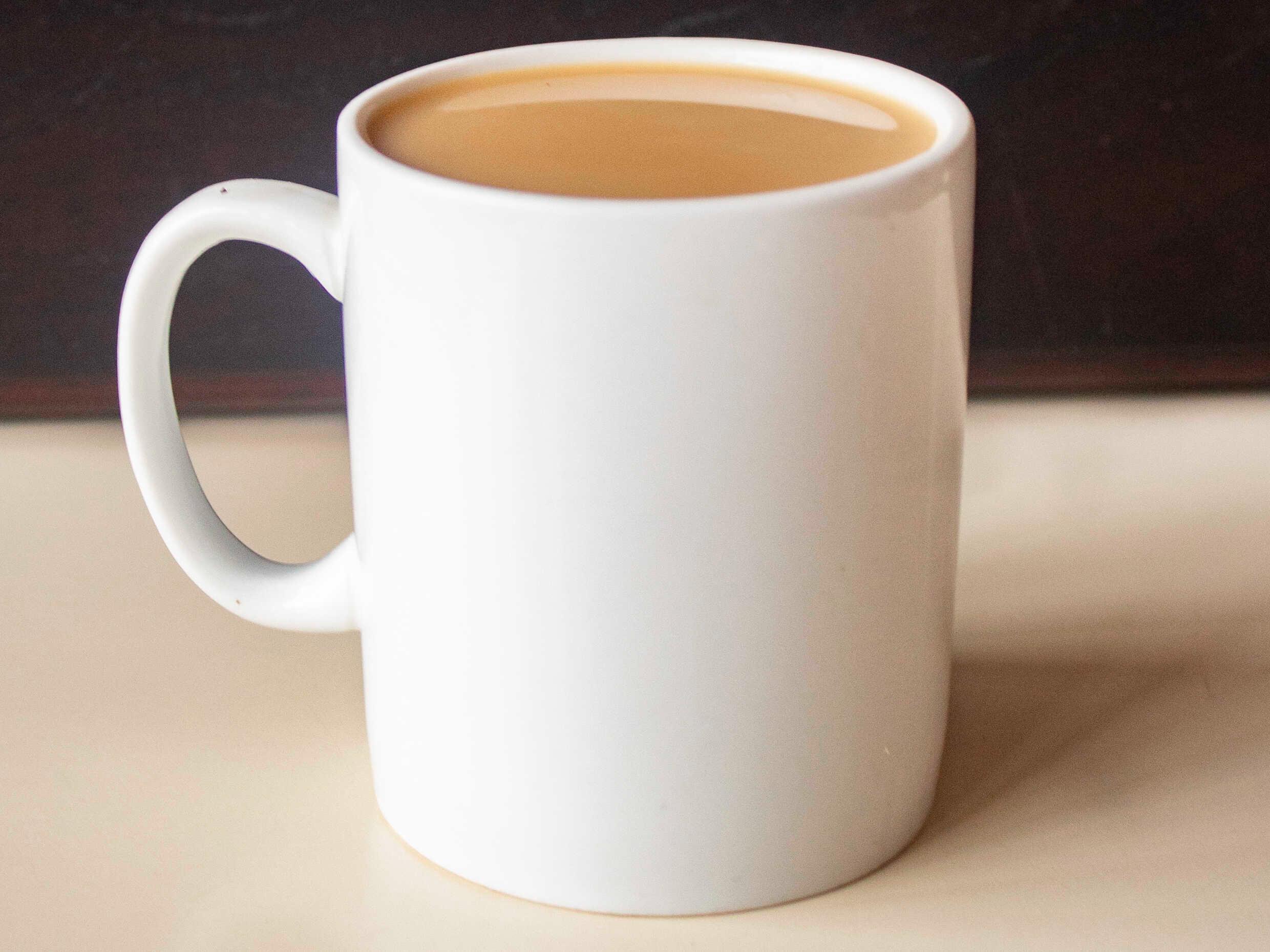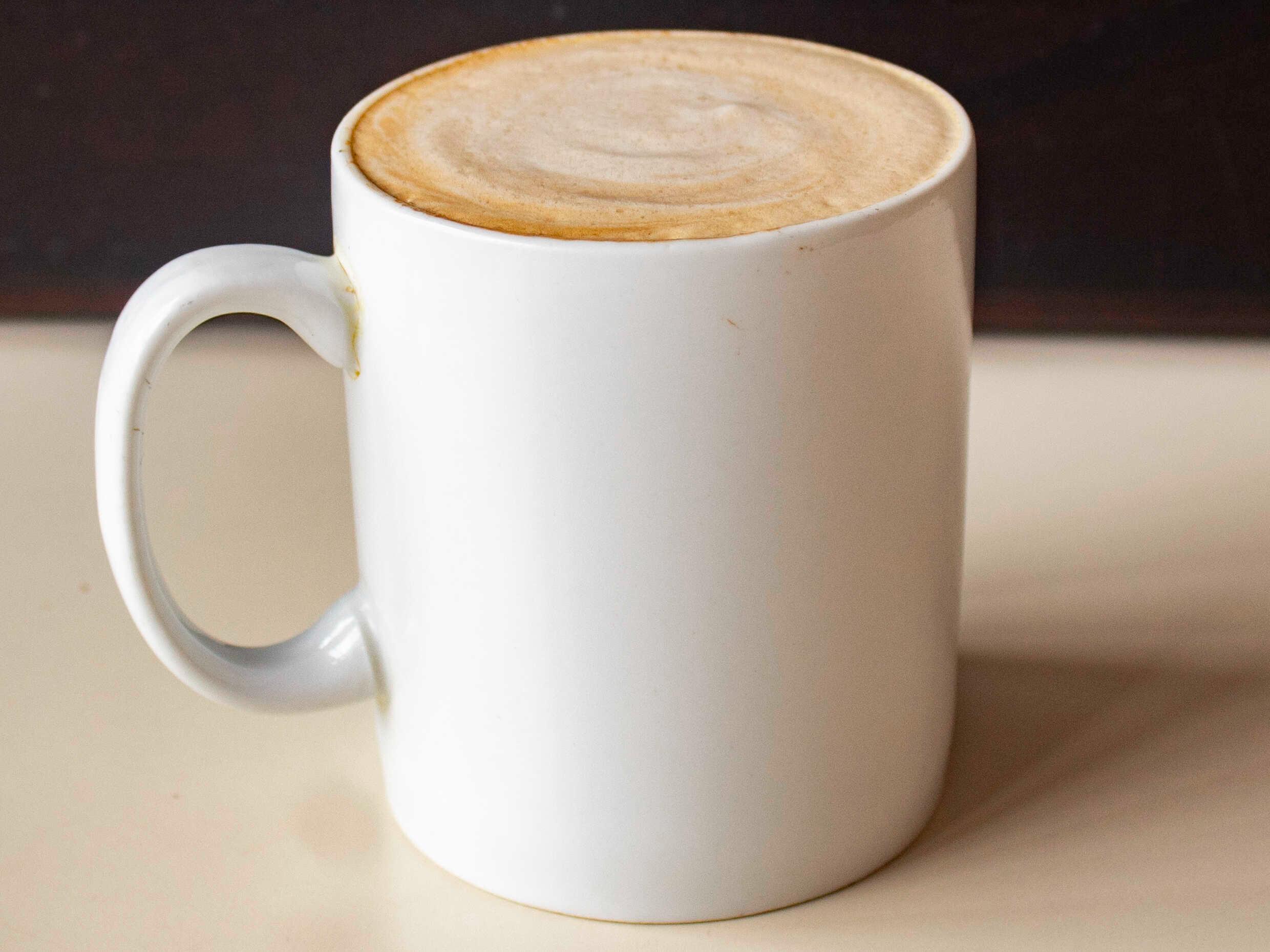 Delicioso café recién chorreado con leche de 12 oz